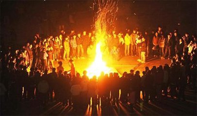 蒙古族歌手争相_上台献艺,大家手拉手围着篝火一-起载歌载舞,度过一个难忘的草原之夜。